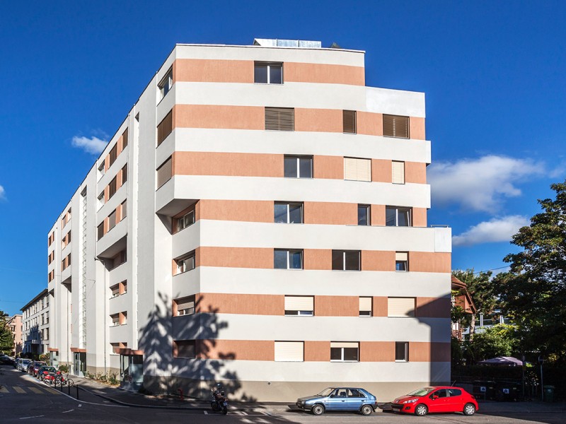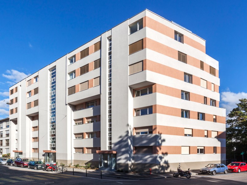 L’immeuble étant habité pendant toute la durée des travaux, une planification serrée a dû être établie pour libérer les caves en vue de renforcer les soubassements, mais aussi pour construire un escalier extérieur temporaire permettant d’accéder aux appartements. Avec de nombreux déménagements et des relogements à la clé, la composante relationnelle a ici joué un rôle capital. Dans le respect des locataires, des mesures d’accompagnement ont été mises en place pour faciliter la transition : séances d’information, soutien à la relocation et à la réintégration après un relogement temporaire, dédommagement et prise en charge des déménagements.